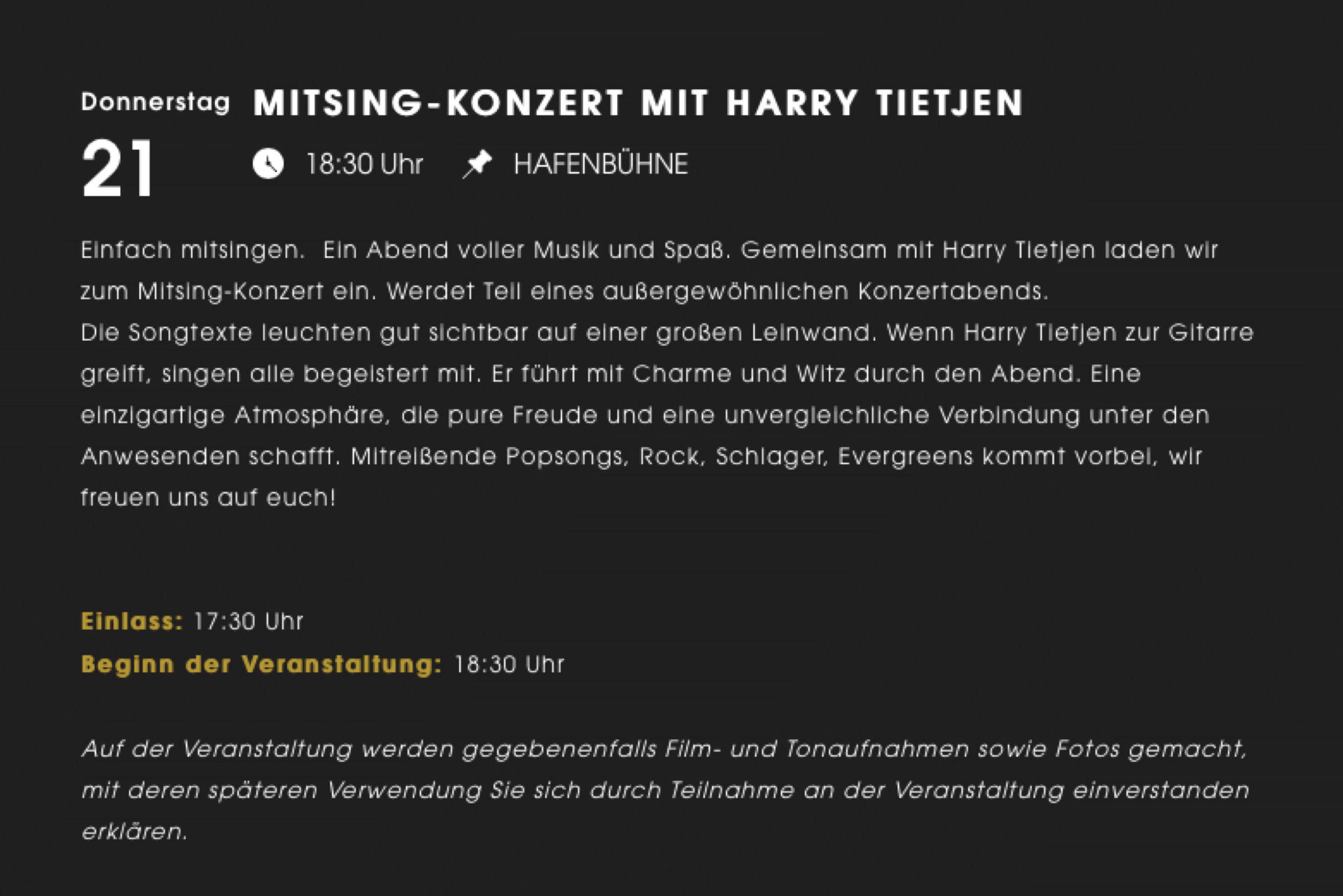 Auszug aus dem Programm der Hafenbühne im PIERDREI
